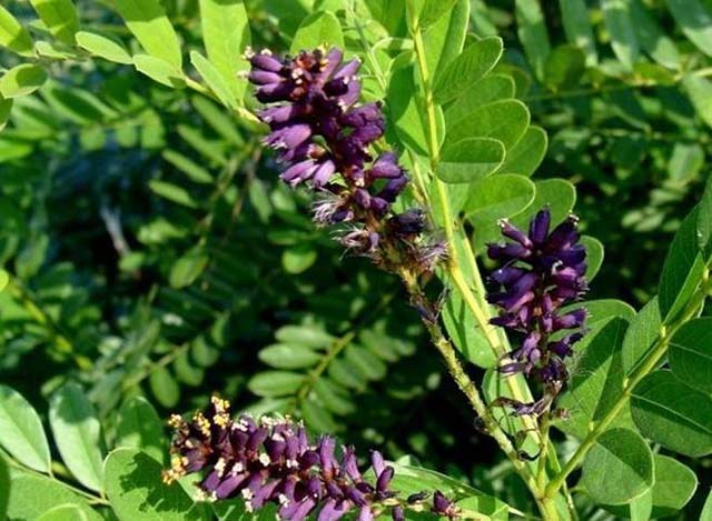 紫穗槐豆科落葉灌木,高1-4米。枝褐色、被柔毛,后變無(wú)毛,葉互生,基部有線(xiàn)形托葉,穗狀花序密被短柔毛,花有短梗;花萼被疏毛或幾無(wú)毛;旗瓣心形,紫色。莢果下垂,微彎曲,頂端具小尖,棕褐色,表面有凸起的疣狀腺點(diǎn)。