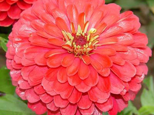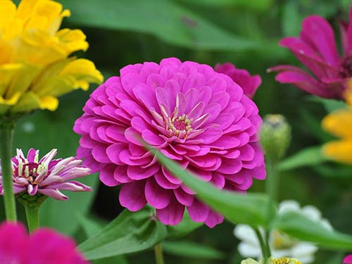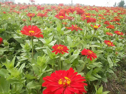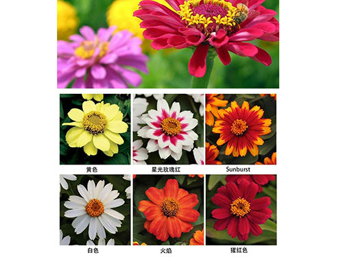 百日草,一年生草本植物。側(cè)枝呈杈狀分枝。夏秋開(kāi)花,頭狀花序單生枝頂,花徑約10厘米,花瓣顏色多樣,花期長(zhǎng),花型變化多端,基本上都是重瓣種。