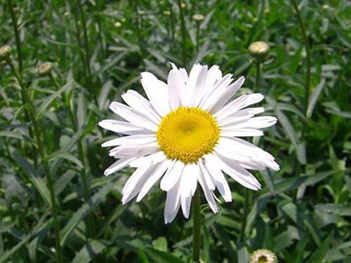 濱菊(Leucanthemum vulgate Lam.)菊科多年生草本,高15-80厘米。莖直立,通常不分枝,被絨毛或卷毛至無毛。基生葉花期生存,長橢圓形、倒披針形、倒卵形或卵形,基部楔形,漸狹成長柄,柄長于葉片自身,邊緣圓或鈍鋸齒。全部葉兩面無毛,腺點不明顯。頭狀花序單生莖頂,有長花梗,或莖生2-5個頭狀花序,排成疏松傘房狀??偘鷱?0-20毫米。全部苞片無毛,邊緣白色或褐色膜質(zhì)。瘦果長2-3毫米,無冠毛或舌狀花瘦果有長達(dá)0.4毫米的側(cè)緣冠齒?;ü?-10月。